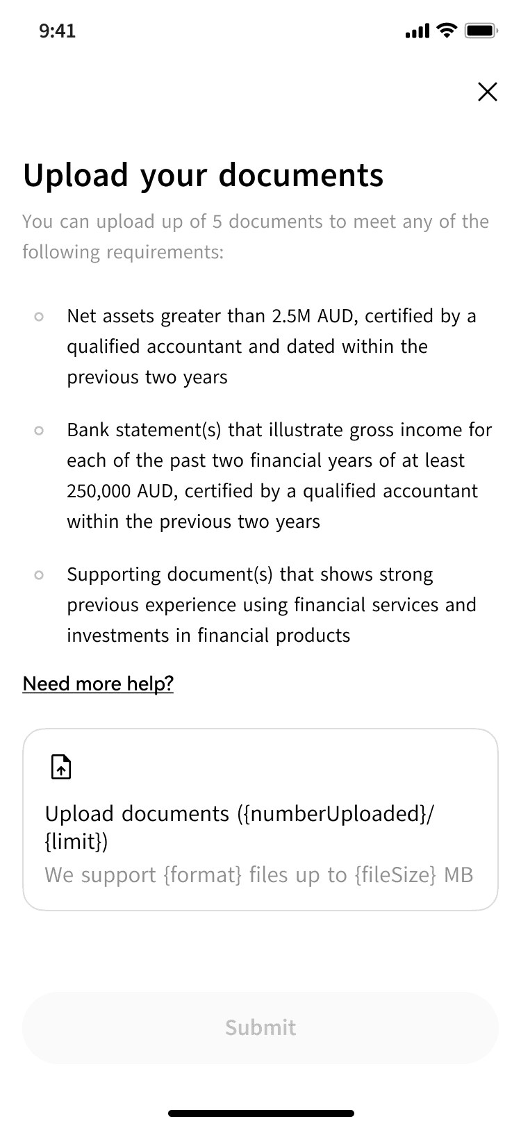 Led end-to-end content strategy for the full derivatives onboarding flow, from eligibility awareness through to first trade. Owned the content framework for a two-step verification experience: the knowledge test, document upload guidance, and all error and edge case states. Partnered with legal and compliance to co-author consent language that met Australian financial services requirements without losing plain English.